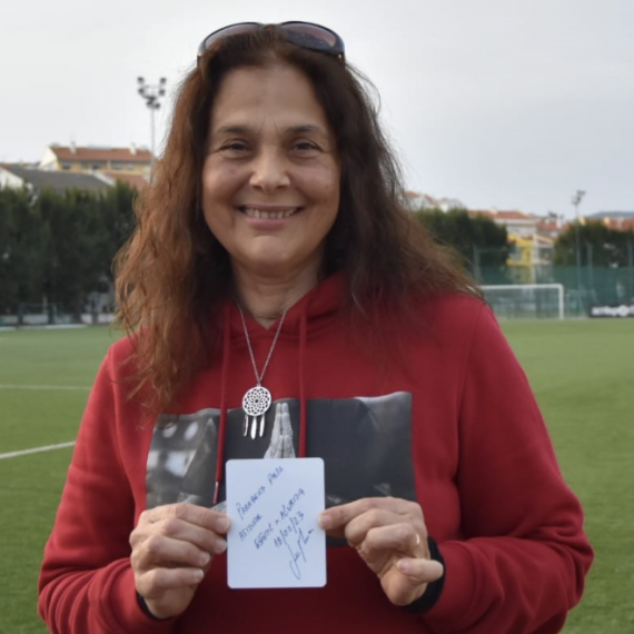 Árbitro mostra cartão branco a adepta especial em jogo de juniores