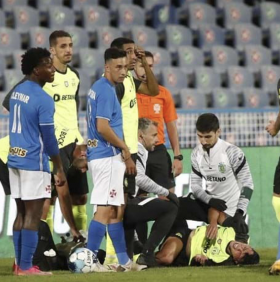 Facto: Paulinho, atacante do Sporting, foi tocado no seu pé direito pelo pé de André Ferreira, guarda-redes do Paços de Ferreira, após...